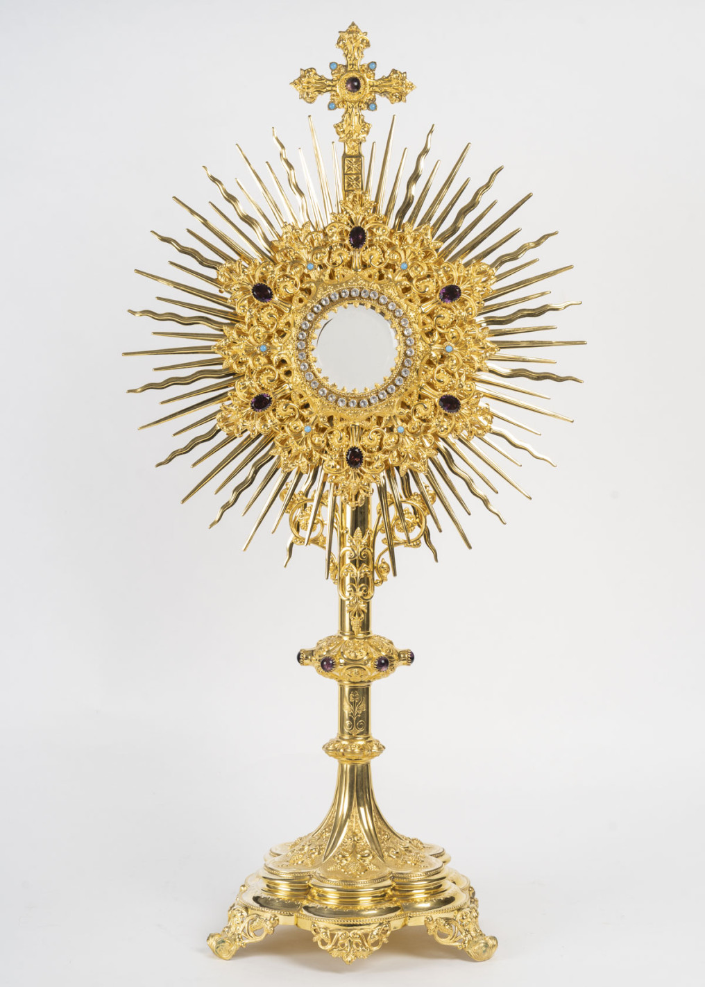 Très bel ostensoir en bronze doré de style néogothique, d'époque Napoléon III, XIXème siècle.