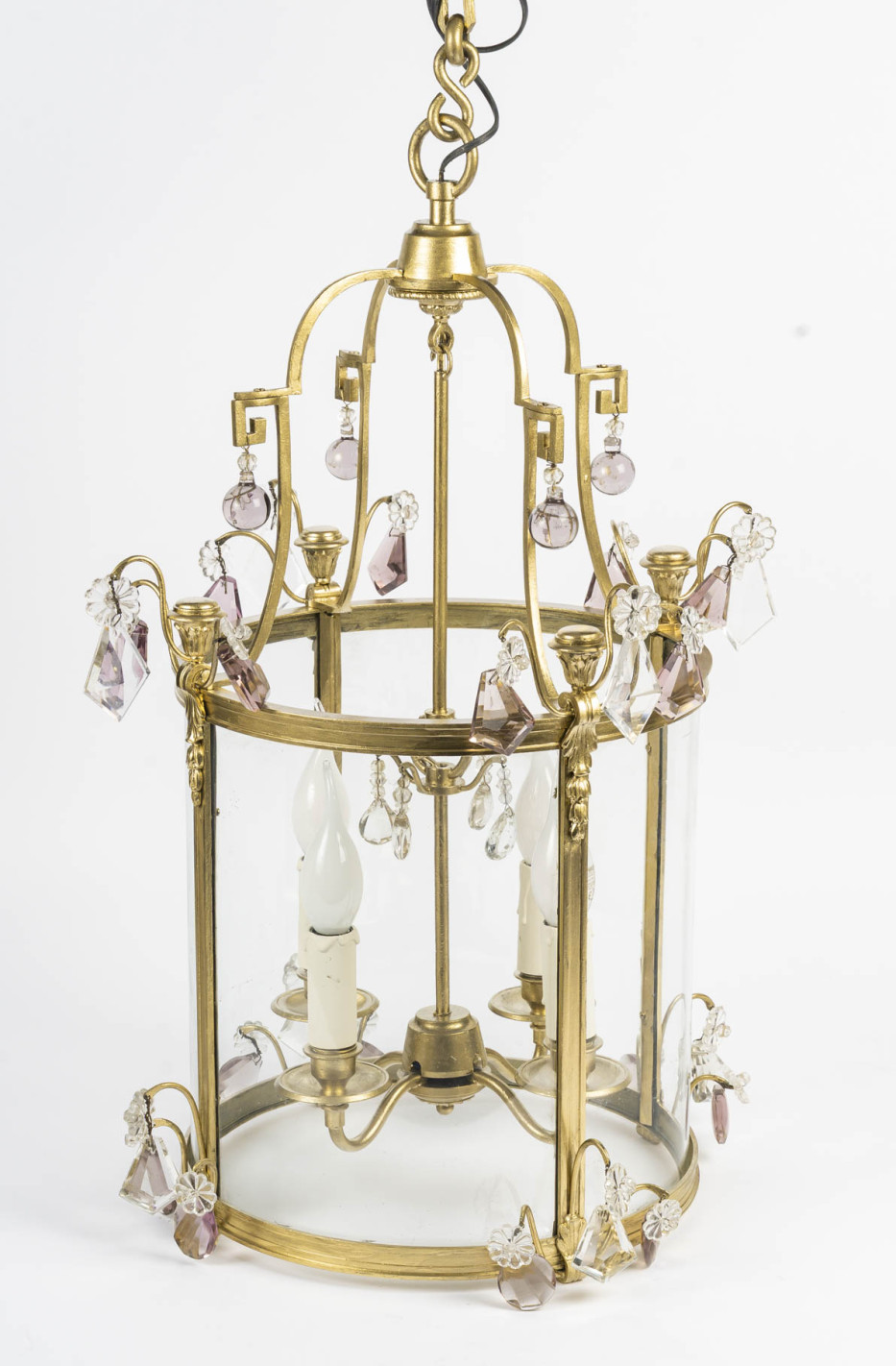 Décorée de pampilles en cristal taillé à facette blanc et améthyste.