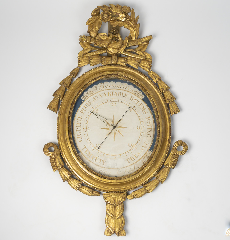 Baromètre en bois sculpté et doré dit "de mariage", d'époque Louis XVI (1774-1793), XVIIIème siècle.